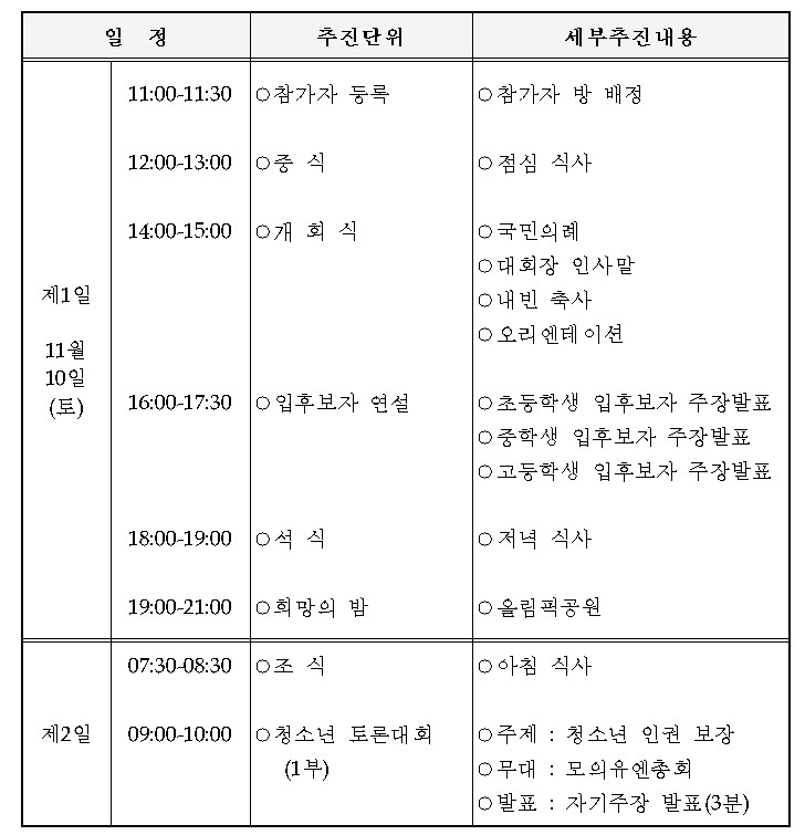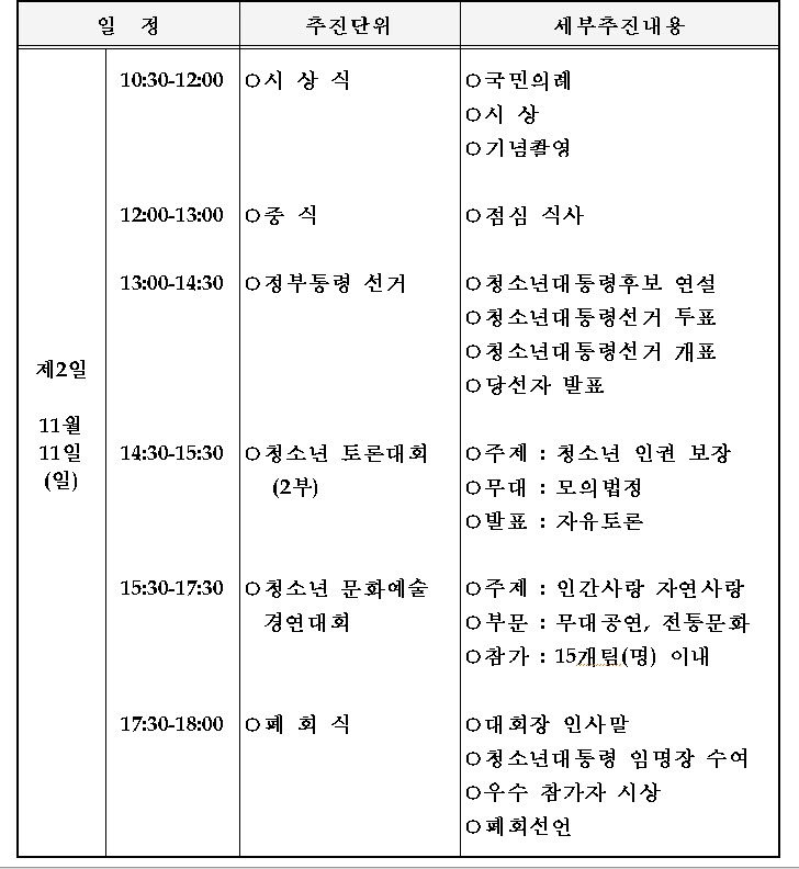 2012 대한민국 청소년 리더십 포럼 프로그램